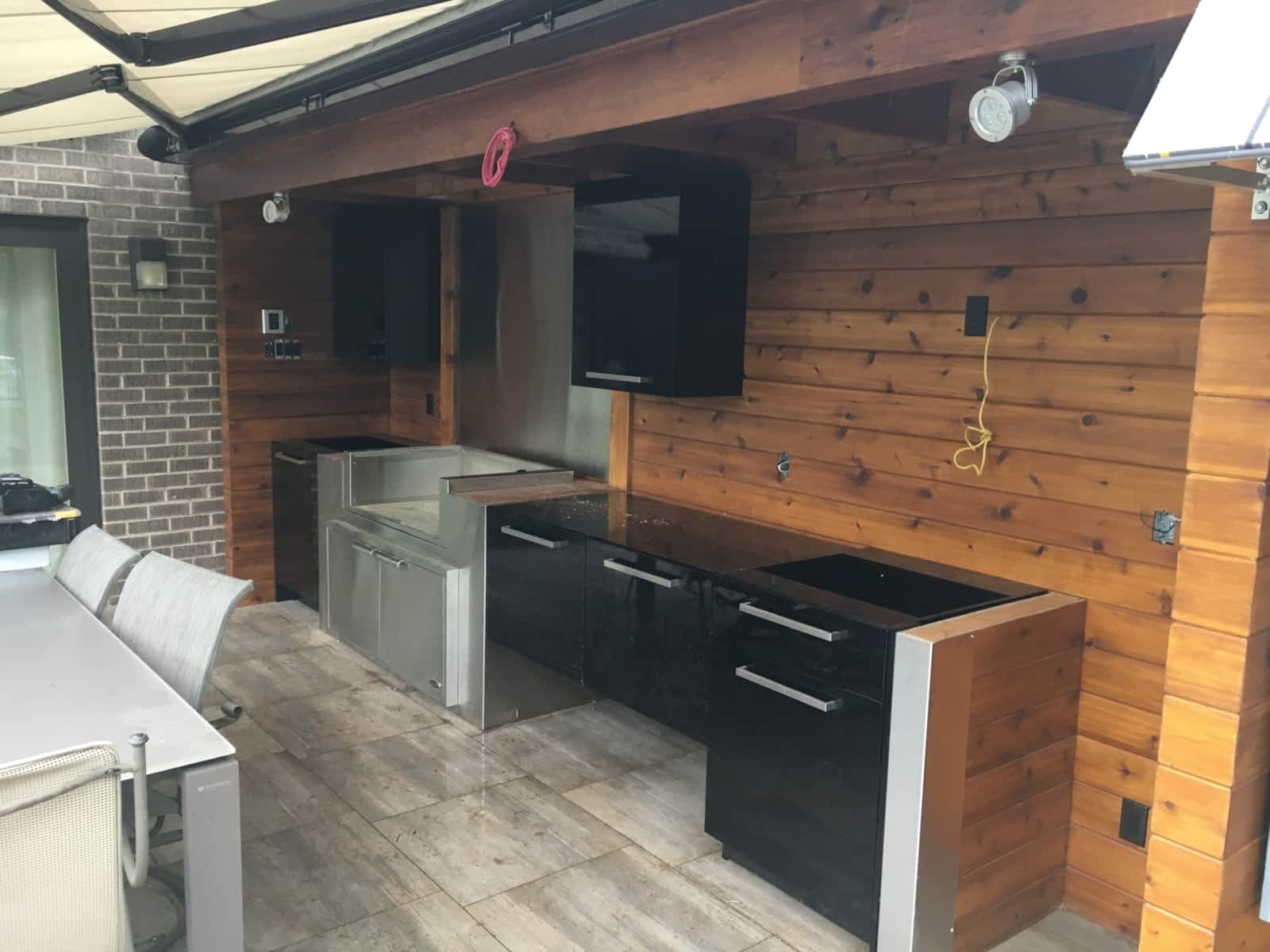 La cuisine linéaire est organisée autour d'une division de l'espace intérieur en deux parties.