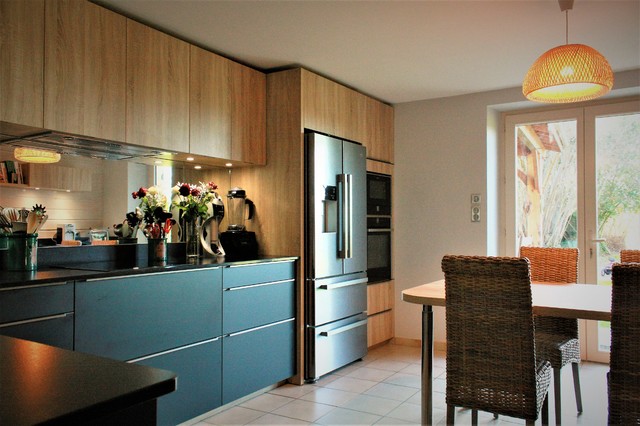 Get Cuisine Chene Clair Et Noir Images. Îlot de cuisine indépendant ; Façade panneau de particules surfacé mélaminé, 4 chants assortis.