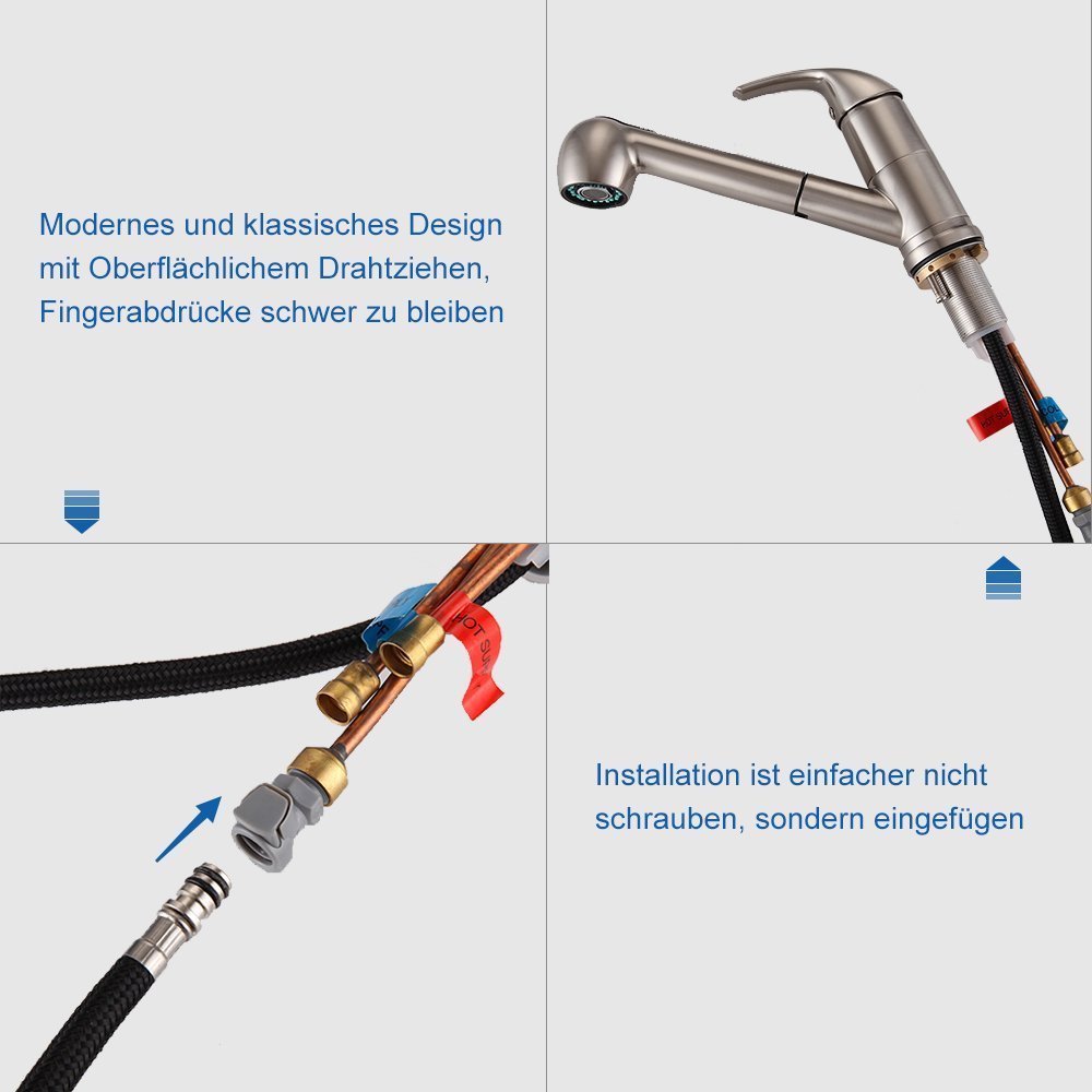 Le robinet mitigeur de cuisine proposé par la marque auralum est un modèle carré de design de qualité allemande.