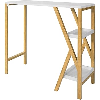 Table Haute De Bar Mange Debout Cuisine Avec 3 Etageres De Rangements Blanc Fwt39 W Sobuy from cdn.manomano.com